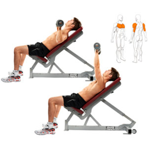 Lower the weights to your sides then straighten your arms. Setting an incline bench promotes the greatest chest and shoulder muscle activation.